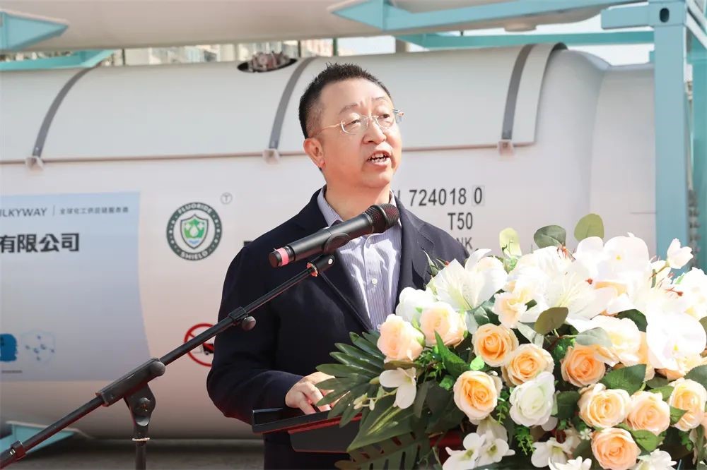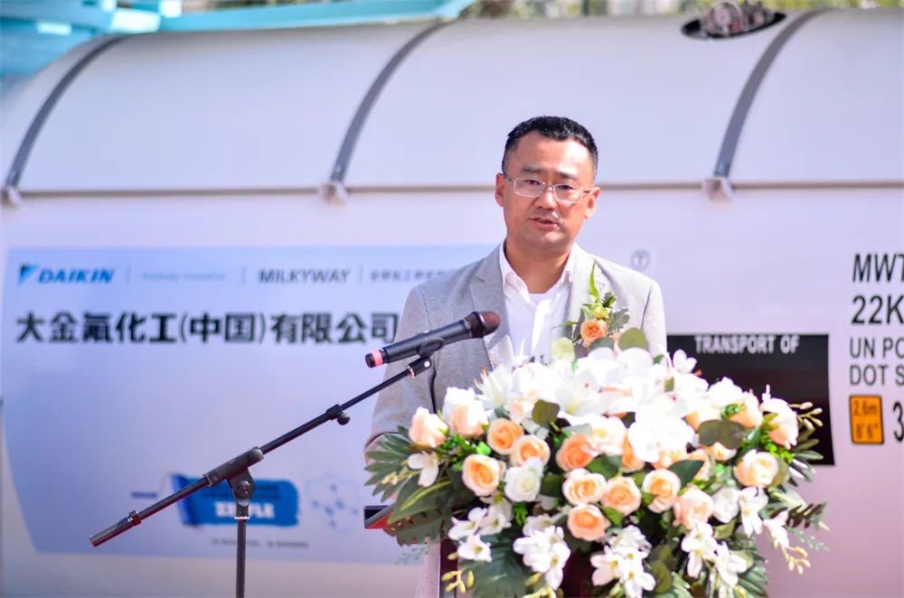 上午10点58分,下线仪式准时开始,TapTap季国祥总经理代表制造商致辞,他表示,密尔克卫、大金氟化工、TapTap分别作为化工仓储物流、精细化工、能源化工物流装备领域的佼佼者,不忘各自肩负的使命和责任,敬畏环境,敬畏生命,在绿色发展、低碳发展、可持续发展方面取得了令人骄傲的成绩,作出了敢想敢为的表率。本次下线的气体箱产品采用了创新的新材料、新工艺,在筒体和框架采用了大金氟化工新一代4F型高固体分、低VOC环保氟碳树脂油漆,具有超长耐候、优良的防腐性能;同时,罐内也率先采用了氟盾水性漆,与传统的镀锌工艺相比,不仅兼容性能更好,而且更加绿色环保,也便于日后维护。这些新技术的应用淋漓尽致地体现了三家企业在追求绿色发展、低碳发展上相同的理念和作出的努力,TapTap非常荣幸未来继续与密尔克卫、大金氟化工一起成长,成为全球化工物流绿色发展、高质量发展的倡导者和创新者。