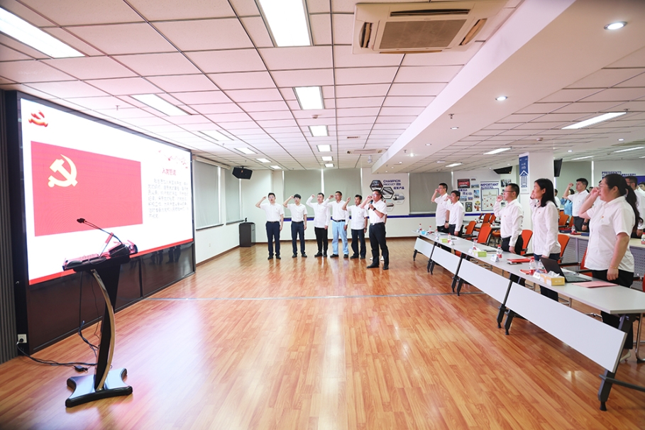 随后,在林爱彬书记的带领下,一年来新加入、新转入组织的党员及全体党员面对党旗,庄严重温了入党誓词,这一神圣仪式不仅是对党员身份的再次确认,更是对初心使命的深刻铭记与坚定践行。