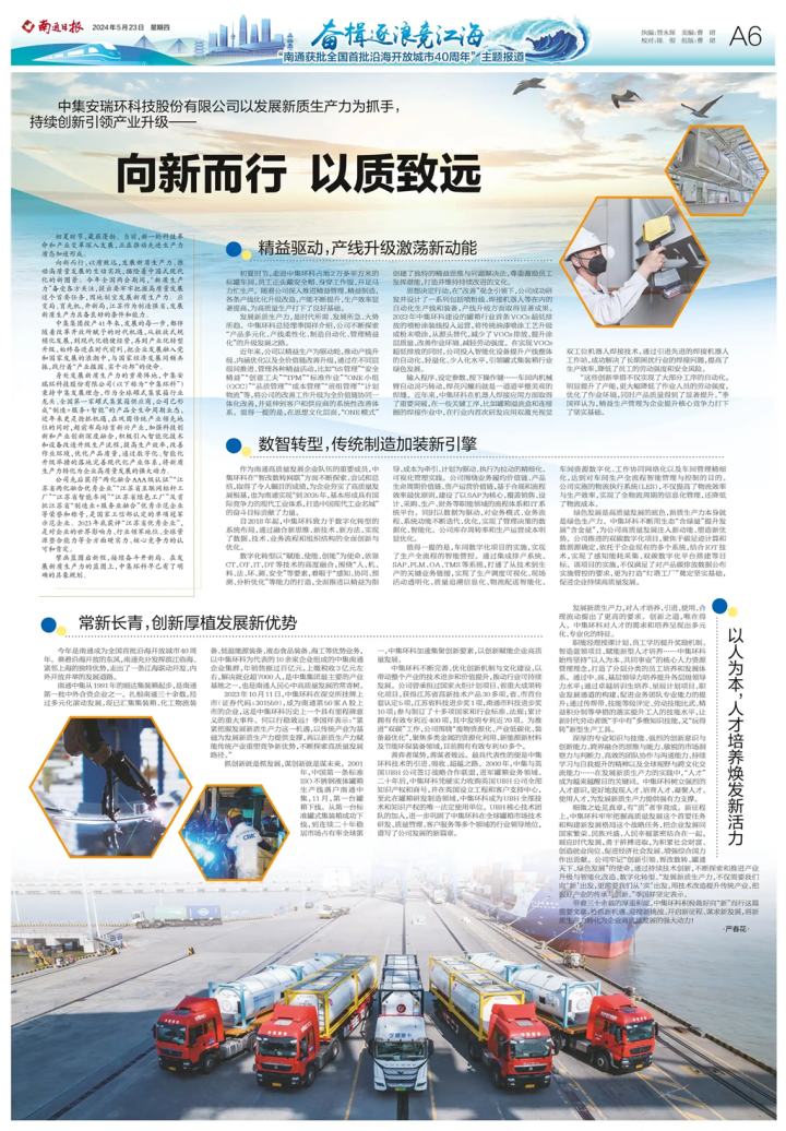 向新而行,以质致远,发展新质生产力、推动高质量发展的生动实践,描绘着中国式现代化的新图景。今年全国两会期间,“新质生产力”备受各方关注,提出要牢牢把握高质量发展这个首要任务,因地制宜发展新质生产力。应变局、育先机、开新局,江苏作为制造强省,发展新质生产力具备良好的条件和能力。