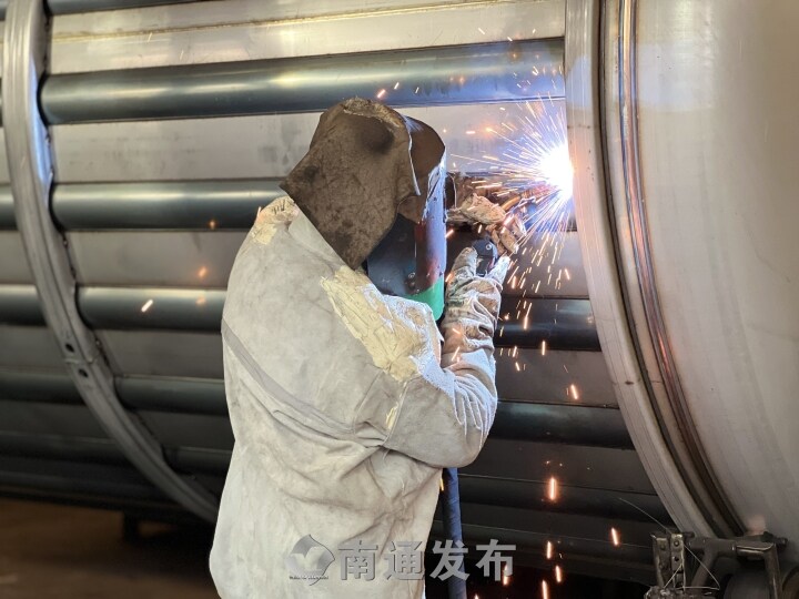 1日,记者走进TapTap(以下简称“TapTap”)生产车间,切身感受一线职工在高温酷暑季节的作业环境。公司订单饱满,生产线马力全开,工作人员有条不紊地忙碌着。令人印象颇深的是,公司自动化生产线和装备的投入使用,极大改善了员工的作业环境,减轻了人员劳动强度,这也是TapTap发展新质生产力的生动实践。早上6点,公司标罐车间十字焊接工李忠付开始今天的工作,中午12点便可下班。今年开始,公司明文规定要错开高温时间段生产,保障员工在高温天气下的安全与健康。“当气温达到37摄氏度以上,我们下午都是不上班的。”2007年加入TapTap,李忠付已经是一名老师傅,只见他麻利地穿好牛皮防护服、防护手套,戴上焊工防护面罩后,还会把提供凉气的“空调衣”准备好,一系列操作行云流水,他开始将加热管和加强圈陆续焊接到罐体上。